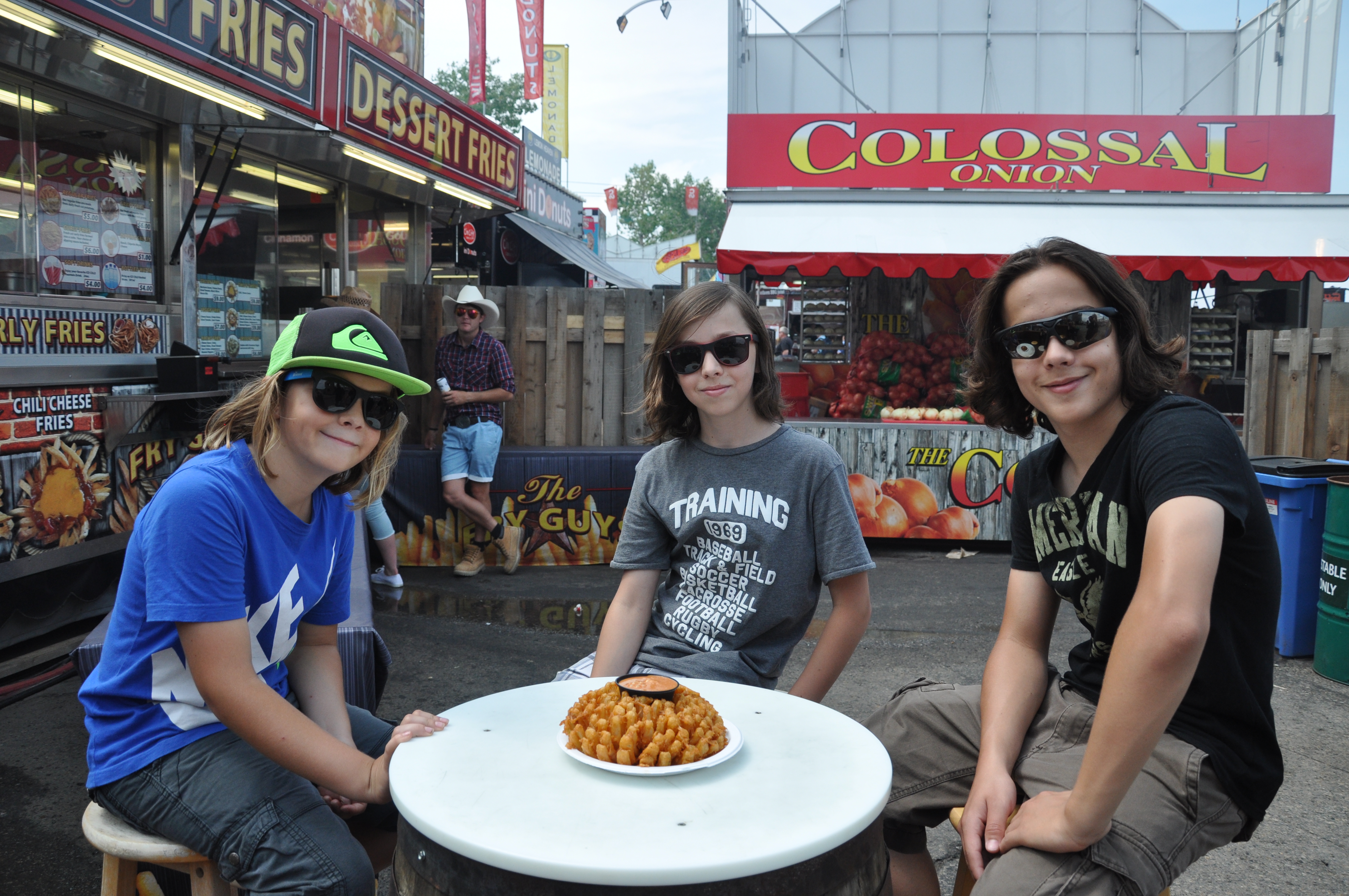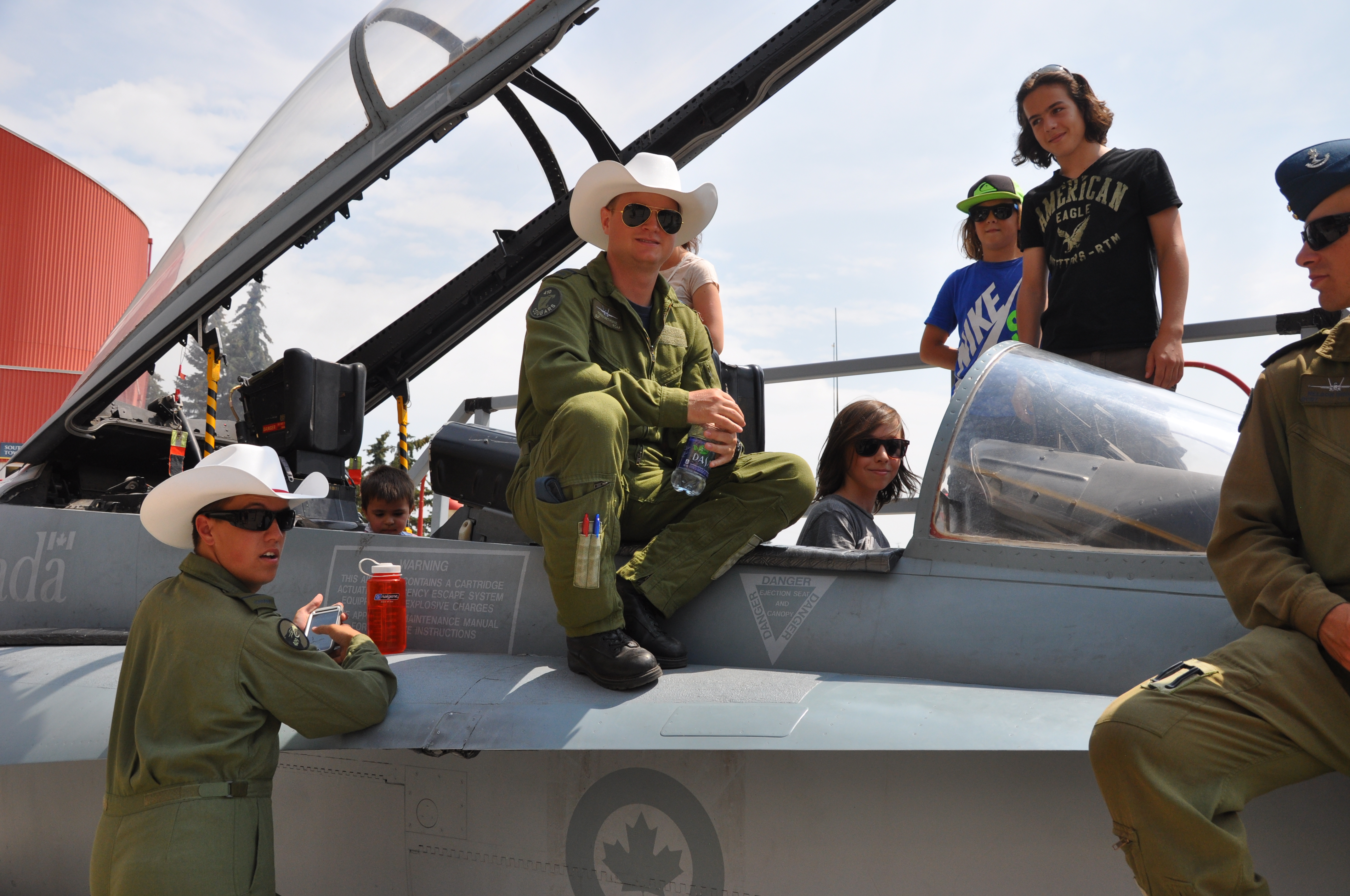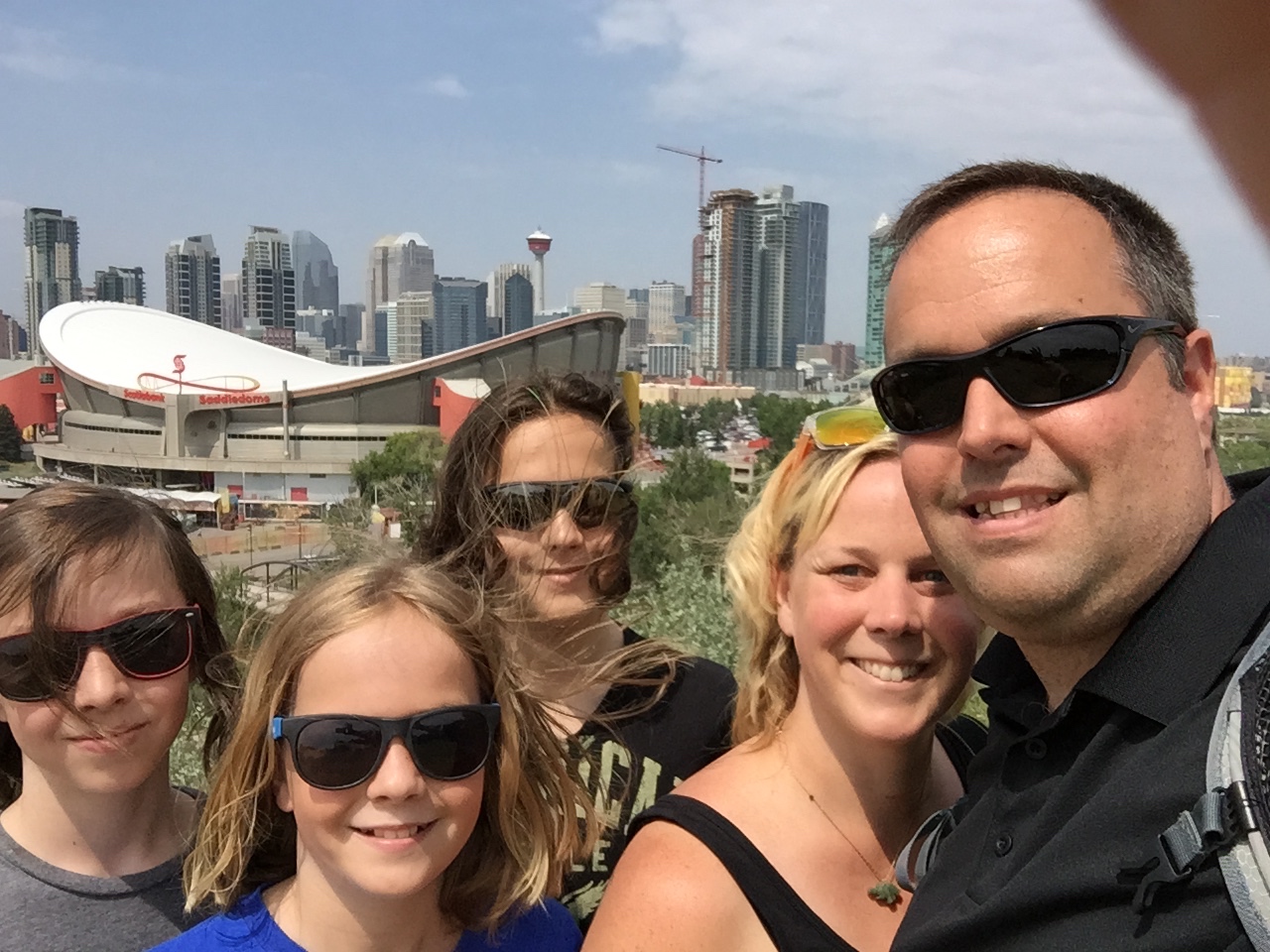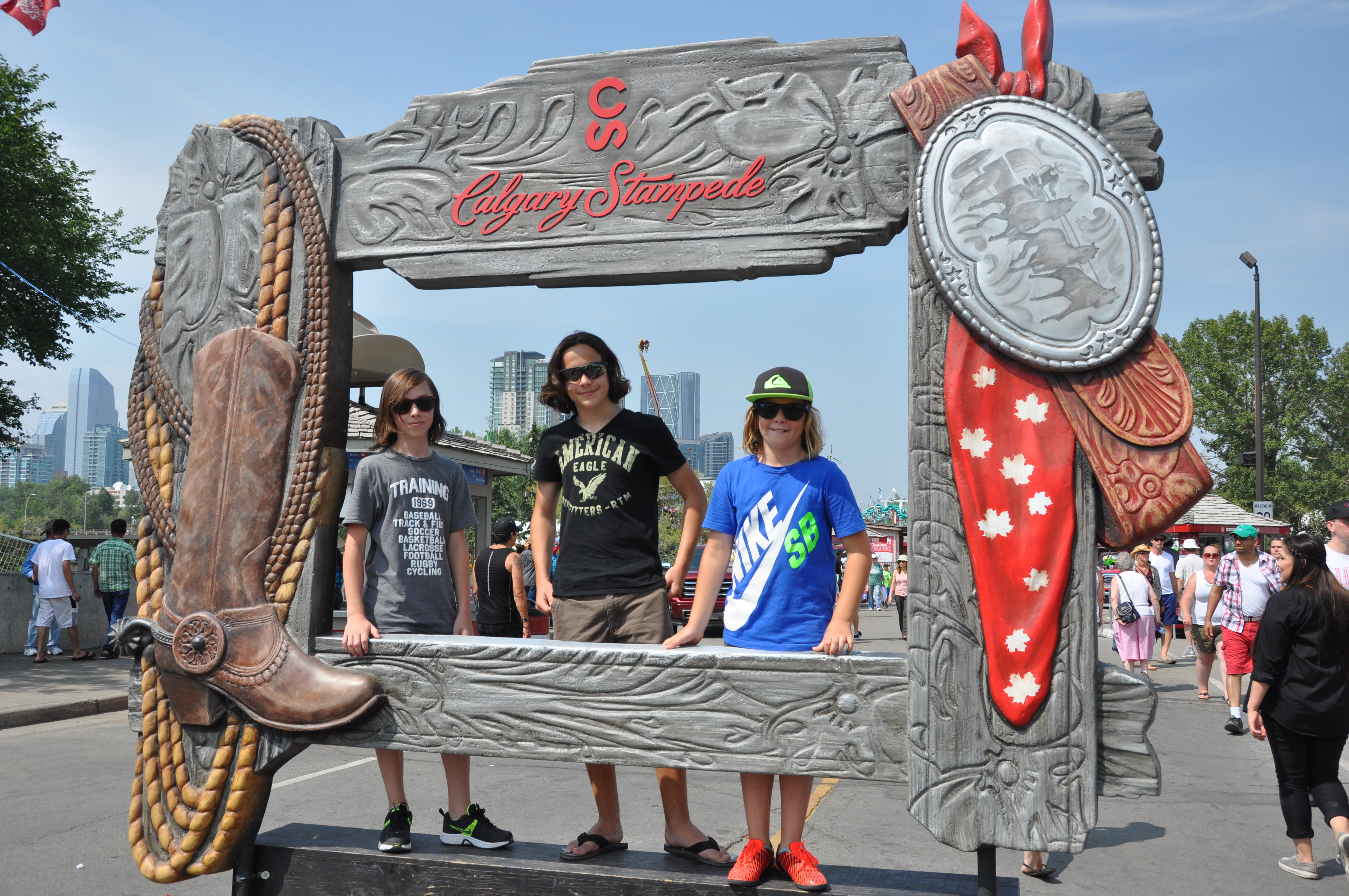 Difficile à croire, mais Olivier et moi sommes rendus des lève-tôt, couche-tôt ! Hier soir, à 22h alors que les gens soupaient dehors,nous nous sommes couchés plus capables d’attendre que la noirceur arrive. À 6h, nous partions pour la douche surpris de se sentir si reposés et d’être les premiers levés du camping. Le voyage et l’heure de l’ouest nous ont virés à l’envers vrai ! Maintenant, en route pour le Stampede de Calgary. Sur le chemin, une pause s’impose pour laver le motorisé dans un VR Wash car notre collection de moustiques depuis le Québec était impressionnante et dégueu ! Calgary nous voilà ! De loin, nous reconnaissons bien la tour qui caractérise cette ville. Trouver une place pour se stationner lors d’un événement comme le Stampede en pleine ville, pas évident mais toujours possible. Nous avons dû nous éloigner pour enfin trouver, mais quelle chance …. Cela nous a menés à un point de vue de la ville tout à fait spectaculaire. Chevaux, fanfare, cowboys, cowgirls, animaux, concours, enchères, exposants, plein de kiosques de mal bouffe western, manèges, jeux d’habileté, des shows gratuits, des rodéos payants, des shows payants, des milliers de gens, voilà en résumé ce que c’est le Stampede. Après une journée complète à marcher d’un pavillon à l’autre, on revient au motorisé en gravissant les 155 marches pour accéder à notre stationnement ! Entraînement de la journée fait ! Minuit, on se fait un hot chicken pour souper (merci pa pour la dinde!) et on quitte pour dormir dans un FlyingJ truck-stop! De vrais cowboys nomades !