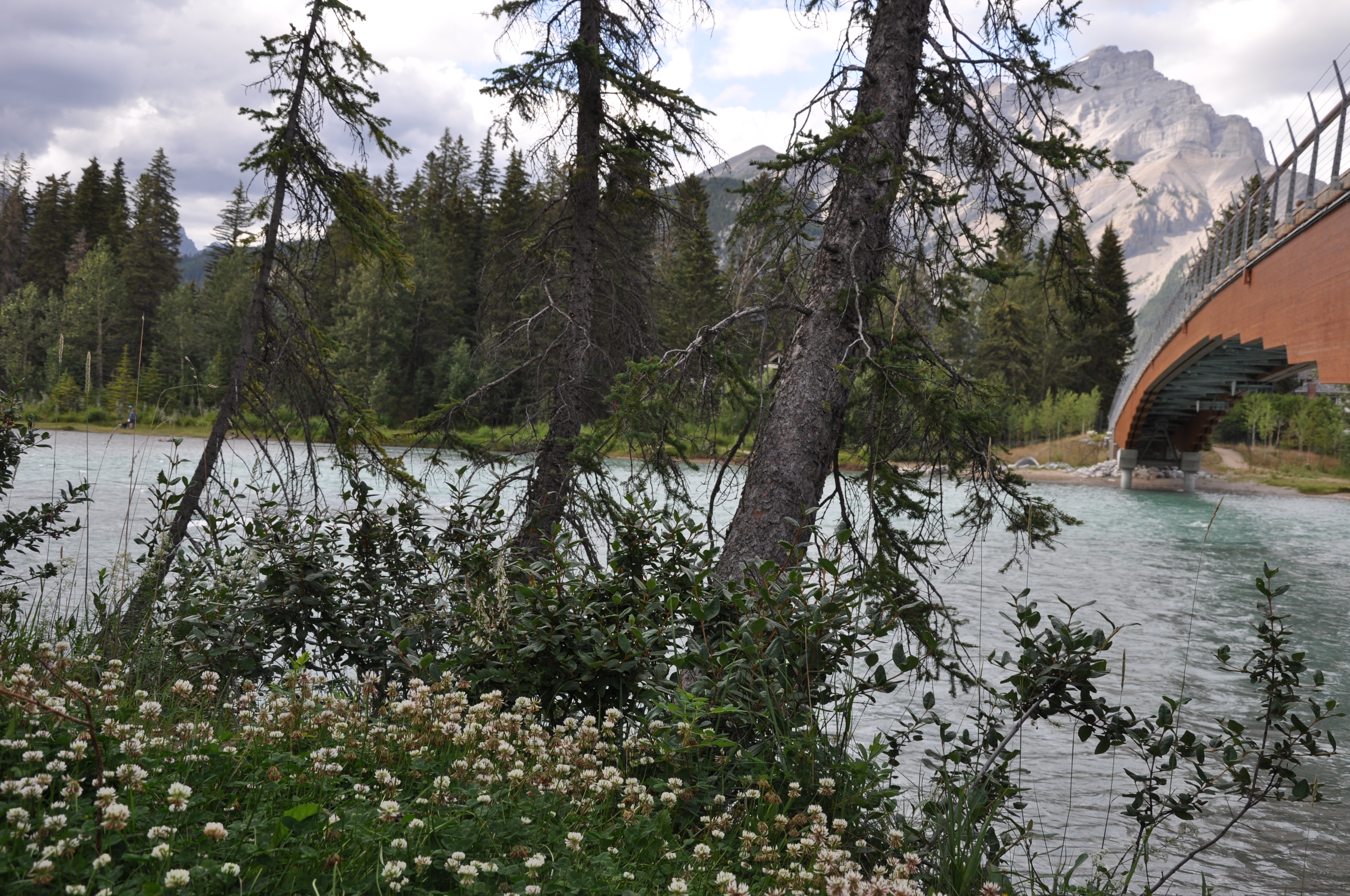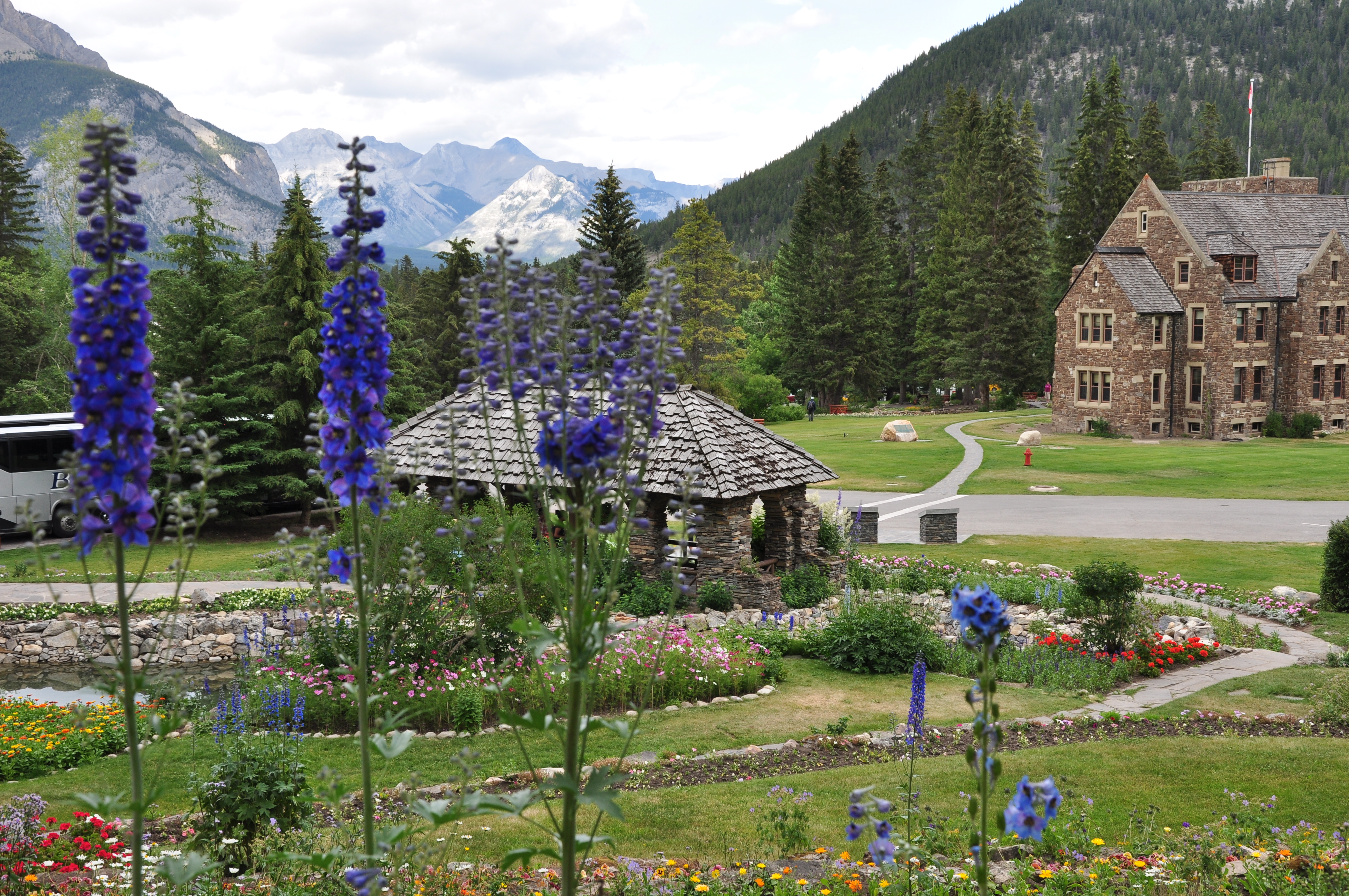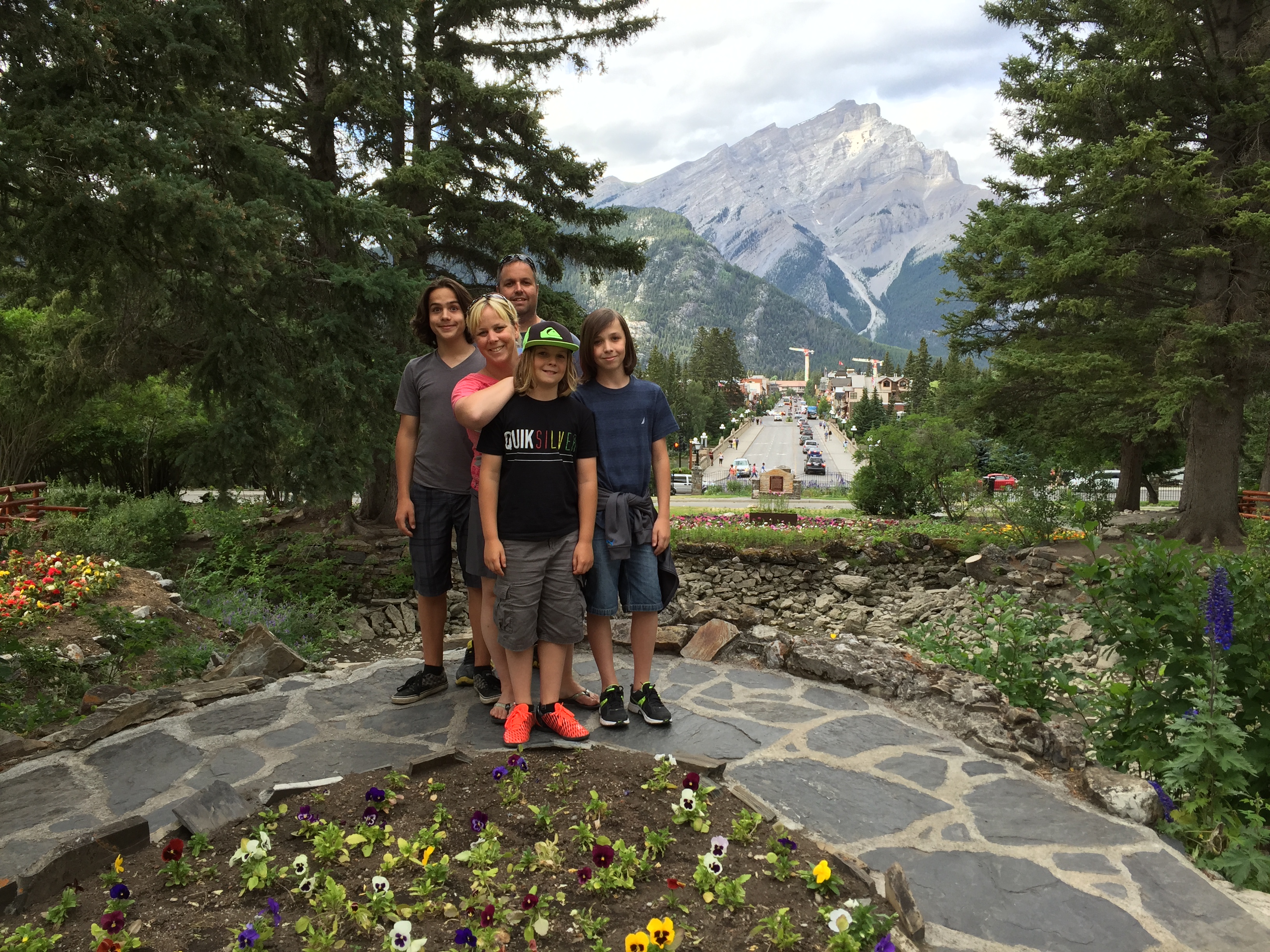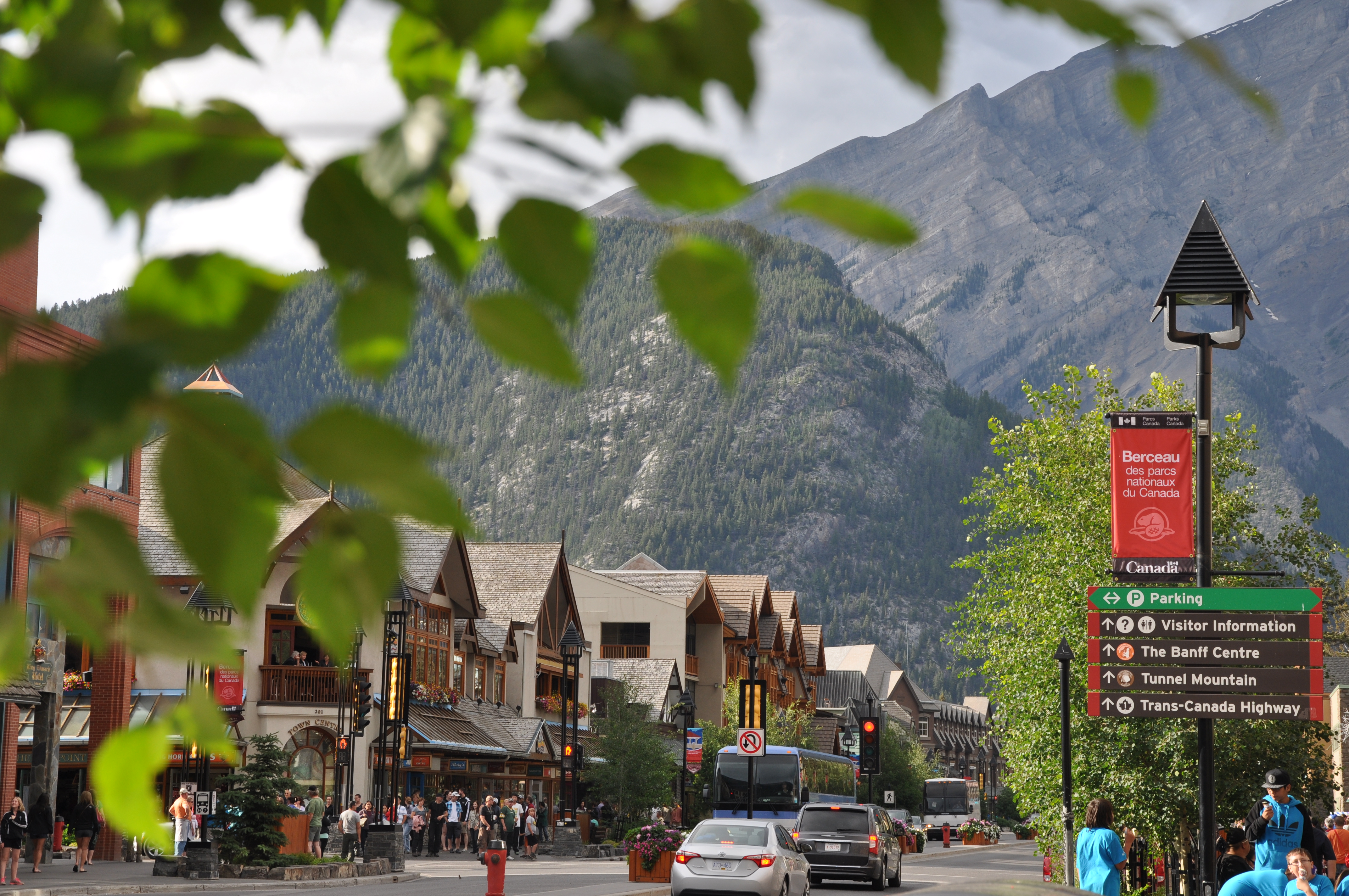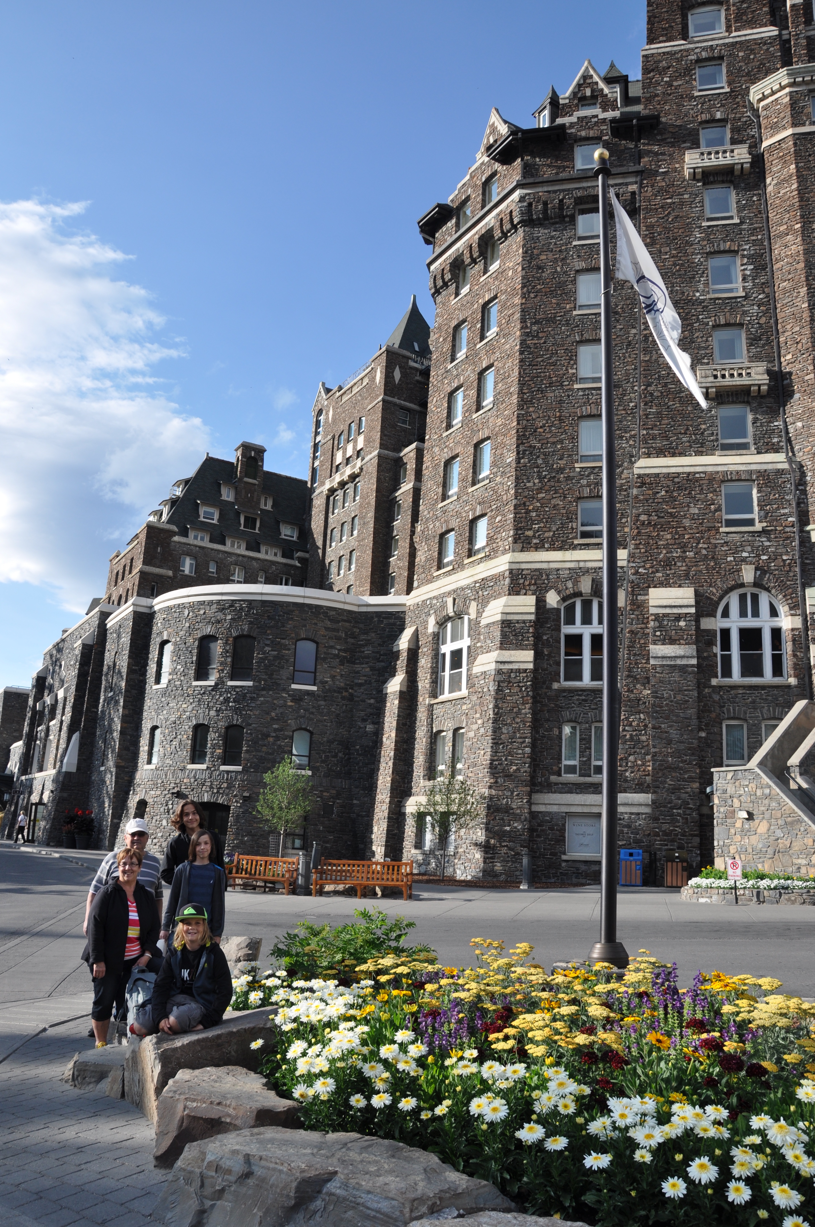 Départ du West Calgary Campground pour les Rocheuses. Les plaines sont coiffées au loin de cette couronne de montagnes qui se dessine tranquillement. Plus nous avançons, plus ces pics de roches deviennent imposants. La palette de la casquette de notre motorisé nous empêche même d’y voir les sommets. Nous installons le VR au Camping du parc national de Banff. De là, nous prenons le bus public pour aller en ville. Endroit pittoresque typique des villages de ski par son architecture, ses boutiques et surtout ses points de vue uniques sur les montagnes qui l’entourent. Lèche-vitrines, promenade dans le Cascades Garden (où les cascades étaient en réno …grrrr) et visite du Fairmont Banff Springs. Sur le pont piétonnier de la Bow River, nous entendons une vibration. Est-ce un iPhone ? Oui mais pas le nôtre. Nous observons entre les planches du pont et trouvons effectivement un cellulaire orphelin. Utilisant des branches, on le récupère. Olivier réussit même à le remettre à la meilleure amie de son propriétaire qui n’en revient pas de la gentillesse de cette démarche. On quitte Banff et dans le bus, Yoan s’aperçoit qu’il a perdu son porte-feuille. En bon papa, Olivier accompagne son fils avec qui il retourne sur les deniers lieux visités… Il laisse ses coordonnées au Fairmont, revient au village, fait des boutiques mais en vain … Quand tout à coup un appel du Fairmont : quelqu’un a rapporté le porte-feuille de Yoan ! C’est ce qu’on appelle DONNER AU SUIVANT …