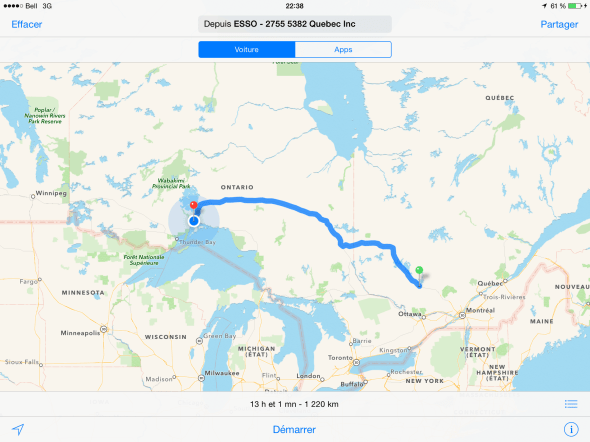 Le match de soccer de Yoan est annulé à cause de la pluie. Nous partons donc de Chambly direction Ouest Canadien. Premier arrêt prévu : Grand-Remous, QC