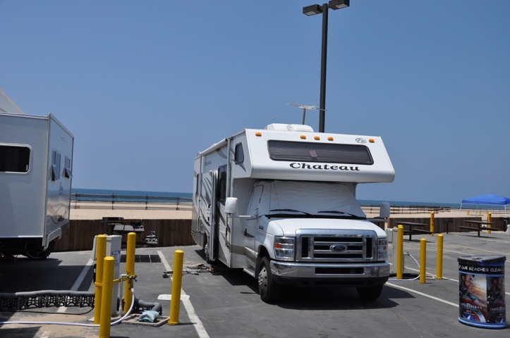 Pas de cadran, pas de route … Journée relaxe à l’horaire. Une petite balade en patins à roues alignées avec les gars qui nous suivent en trottinette, c’était une façon bien agréable de débuter la journée. De plus, quelle facilité lorsque la piste passe à quelques pieds de notre motorisé. Nous apprécions drôlement d’avoir trouvé ce camping malgré … Et oui, il y a un malgré … malgré le fait que nous sommes au bout du terrain de l’aéroport de L.A. ! Pour ceux qui ont déjà campé en Virginie, il n’y a rien là le trafique des F16 ! Au moins, les militaires arrêtent la nuit ! Bref, les gars en ont vu des avions : Un décollage aux cinq minutes maximum (au heure de pointe, un avion à la minute). Selon la piste où le décollage à lieu, nous pouvons parfois être obligés de faire pause à notre conversation ! Cela ne nous a pas empêché de savourer ce temps de repos où faire de la plage voulait dire être à notre motorisé ! De plus, peu de gens sur la plage, des vagues « extrêmes comme je les aime » dit notre Yoan, un beau ciel bleu et 20 beaux degrés chauds ! Oui, on se doute que vous riez de ce que nous trouvons agréablement chaud en ce moment ! Quelques brassées de lavage en soirée, un bon ménage de l’intérieur du VR … un vrai vendredi ! Nous sommes prêts pour profiter de notre fin de semaine.