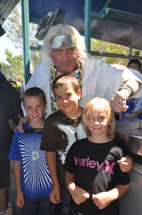 Peu de temps après avoir quitté la côte du Pacifique pour aller en direction d’Hollywood, le mercure a monté. Ciel bleu et 31 degrés celcius à notre arrivée à Universal Studios. Pas de problème pour stationner notre gros bolide : nous avions un parking XL et en plus, tout près de l’entrée. Quelle journée chaude avec un parc bondé de monde ! Ouf ! Nous pouvons vous assurer qu’ils sont organisés pour accueillir foule et canicule : la majorité du temps, nous avions accès à de l’ombre dans les files d’attente, à des cool zone ( ventilateurs qui dégagent une bruine fraîche ), à des fontaines d’eau et à des kiosques vendant à des prix exagérés des breuvages ou produits glacés. Cela prenait cela pour rendre un peu vivable une attente entre 45min à 1h40 par attraction ! Comme toujours, nos gars n’ont pas dit un mot. Rouges comme des tomates, ils patientaient en regardant chaque affiche, chaque décor ou animation près d’eux ! Nos coups de coeurs : le Studio Tour où nous avons exploré les emplacements de tournage de plusieurs films, the Simpson Rides qui nous a brassé le camarade, Shrek 4D et le Jurassic Park Ride où nous étions si fiers d’être dans la dernière rangée de notre wagon de style pitoune… Les MOFLY mouillés mais pas à peu près ! Sans oublier les 2 excellents show Waterworld ( cascades et action dans un bassin d’eau ) et Secial Effet Stage ( où on nous faisait des démo. d’effets spéciaux du cinéma ). En résumé, une journée amusante et diversifiée dans un parc d’attraction du calibre de Disney ! On quitte vers 22h30 pour notre camping à 1h de route à Anaheim … on va bien dormir !
