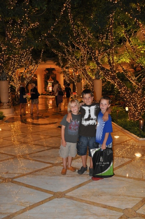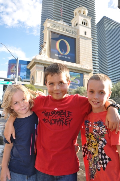 Il et 2h30 du matin et nous venons de terminer de souper et de coucher les gars … c’est ça Las Vegas ! Le matin pluvieux nous a permis de dormir. Ensuite, ce fut un vrai marathon des hôtels. Nous nous sommes vites rendus compte que nous ne serions pas capable de revenir faire une pause au camping avant notre spectacle à 19h30 (Juste notre visite du magasin m&m de 4 étages a pris plus d’une heure! ). Nous avons donc sprinté la visite des hôtels les uns après les autres en débutant par le Mandala Bay. La marche fut au cœur de notre journée. Les gars sont résistants c’est incroyable ! En 40 heures à Vegas nous avons survolé les principaux hôtels, vu les spectacles des fontaines du Bellagio, du volcan du Mirage et des pirates du Treasure Island et que dire du spectacle O ! Nous ne pouvions nous offrir un plus beau cadeau d’anniversaire de mariage ! Assis au centre à la première rangée, nous avons vécu une expérience merveilleuse. Voir de près les personnages, les costumes, les maquillages, chaque muscle travailler, croiser le regard des artistes, les entendre respirer, se faire éclabousser, vivre les sensations vertigineuses des prestations en hauteur et entendre notre Félix rigoler et attraper une bouée gonflable d’un clown qu’il a pu garder comme souvenir. Unique. Quel chef-d’oeuvre ! Après un spectacle comme celui-ci, il est difficile de ne pas vouloir revenir pour y voir les autres prestations du Cirque du Soleil ! Nous garderons toujours en mémoire ce bel instant passé en famille dans une ville où le » faire à croire » est partout !